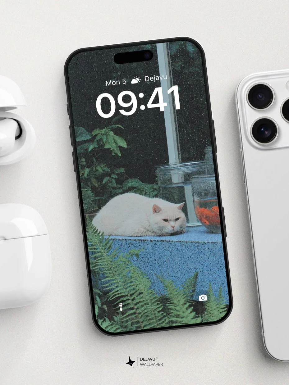 A tabby cat leans into the frame,